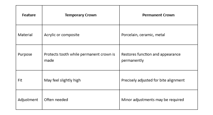 Understanding the differences between temporary and permanent crowns helps explain why a crown may feel high: